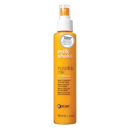 milk_shake incredible milk is an intense leave-in spray mask hair treatment that performs twelve actions: protects hair from UV rays; repairs all hair types; maintains color; protects from heat; detangles; maintains hair style; adds maximum shine; creates body and volume; controls frizz; banishes and prevents split ends; easy straightening; smoothes the cuticle.