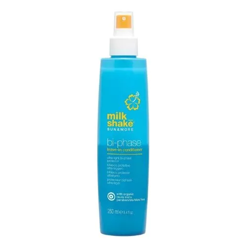 milk_shake sun & more bi-phase leave in conditioner is an ultra-light bi-phase protector and a leave-in conditioning spray that protects hair exposed to sun, salt and chlorine. Paraben free.